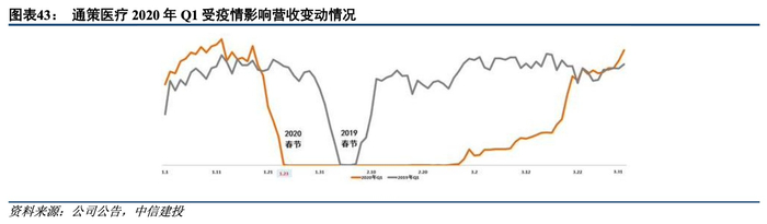 2020年国内疫情影响回顾——通策医疗:2020年3月下旬恢复正常。公司20Q1、20Q2收入增速分别为-51%、20%。1月23日,医院进入春节假期,全国多省市启动重大突发公共卫生事件一级响应后,省卫健委通知暂停下属医院全部诊疗服务。3月初:公司陆续恢复下属医院急诊业务,其他业务逐步开展,但种植、牙周超声波等操作时间长、气溶胶产生较多的口腔择期手术和治疗仍未恢复。3月末:经营情况已恢复并超越2019年同期水平。5月18日:公司旗下医院全面恢复诊疗业务。