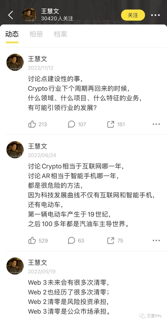 这让人很多人以为王慧文将会涉足Crypto以及web3领域。