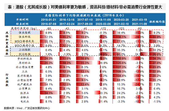 6、假如后续美股仍有调整压力,港股能否脱钩?我们在22.11.13《港股天亮了》中提示:历史上港股对美股走独立行情一共有五段,比较共性的是在 “美元弱、美债利率下、人民币汇率强”时,跨境资金仍有望在美股下跌时买入港股,使得港股估值在波动率抬升时保持稳定。