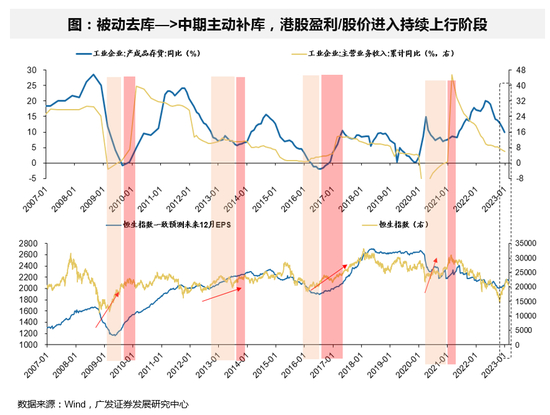 第三个视角是库存周期。从被动去库到中期主动补库过程中,港股盈利/股价动能逐渐增强。目前仍在这一进程的初期,相比去年4季度,当前复苏进程持续,盈利环比改善很自然,我们判断当前已经从主动去库临近被动去库存的阶段,后续企业盈利动能将逐渐增强。
