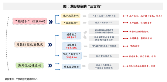 11月18日《港股牛市三阶段》我们提示本轮港股牛市是个万点行情。一阶段:11月以来事件信号带来主权风险溢价下降。疫情防控/地产调控优化预期,打响港股熊转牛号角,极低估值下空头平仓驱动反弹。二阶段:价值重估。基于地产调控/疫情防控优化落地,外需回落下政策稳增长加力,重点板块政策确定性提升,市场对于基本面修复的预期得到确认,带动估值回升。三阶段:企业盈利兑现。体现在经济确认修复,宏观向微观传导,盈利改善兑现,推动指数继续上行。