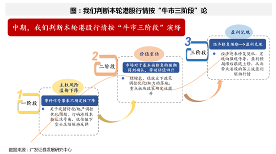1、作为本轮港股牛市旗手,我们去年11月10日领衔全市场call港股“天亮了”指出“这是我们2019年以来做出的第三个最重要判断。”本轮港股牛市是个万点行情。当前处于牛市第二阶段,本轮“牛回头”后港股持续性的行情需要靠(三阶段)盈利驱动。