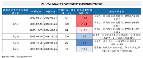 第一个视角:我们选取过去十年牛回头的可比阶段,历次回调主要可以归因为三因素:中国经济复苏节奏波折、美债利率/美元反弹、美股急跌。本轮特征是1月美股引领全球高斜率上涨使得全球风险溢价位于临界值,此时美债利率反弹对全球资金面形成压制。历次牛回头阶段恒指平均-11.7%,时长平均2-3月。那么本轮从开年以来按照收盘价来算,已经回调了11.3%。在这些统计样本中,回调幅度较大(超过15%)的往往是中国经济再探底,但目前来看经济并未转弱,只是修复力度和空间的分歧。