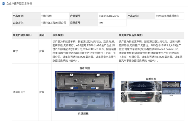 国产特斯拉Model Y信息变更备案 新版车型改为“无雷达”方案
