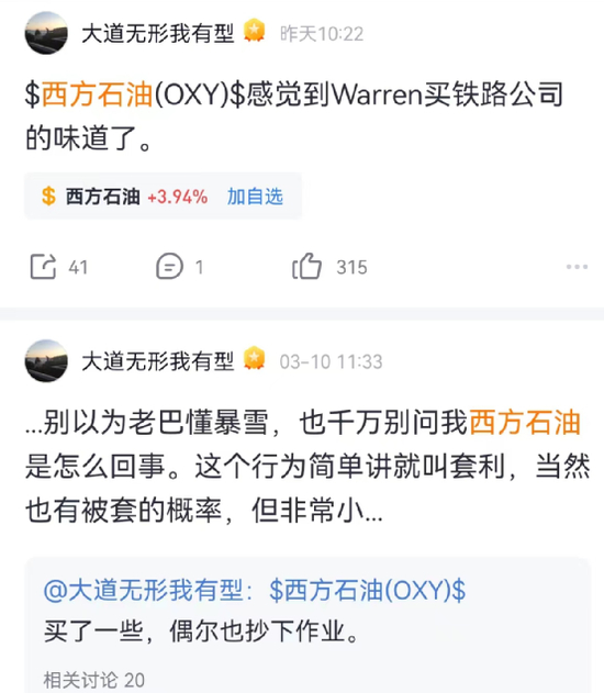 在巴菲特再度加仓西方石油以后,投资大佬段永平昨天上午在社交媒体上说,“感觉到Warren买铁路公司的味道了”。他之前发的一条信息也说,“买了一些西方石油,偶尔也抄下作业。”