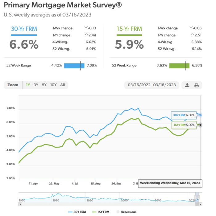 然而,在美联储持续加息的风暴下,昔日的火爆楼市迅速冷却。美国住房抵押贷款金融巨头房地美(Freddie Mac)的数据显示,截至3月16日的30年期抵押贷款利率为6.60%,尽管较上一周的6.73%略有回落,但仍大幅高于一年前的4.16%;去年10月美国30年期抵押贷款利率一度飙升至7%以上。