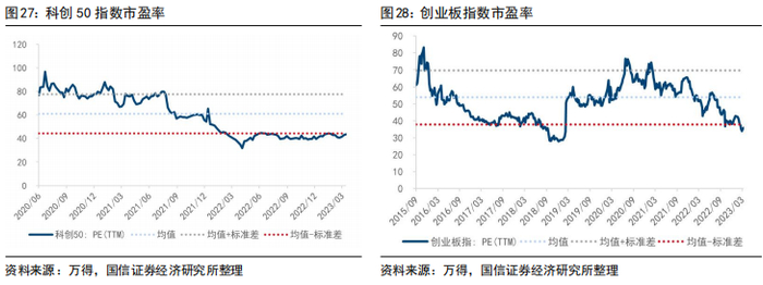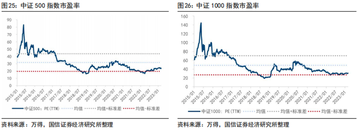 从变化情况看,近五个交易日各宽基指数估值小幅上升,其中科创50和创业板指上升幅度最大,分别上升0.66倍、0.62倍;分位数角度,目前各宽基指数中,中证1000位于历史20%分位数以下,创业板指数位于历史10%分位数以下。