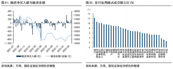 近期融资融券规模小幅上升,融资净买入94亿。截至3月30日,两融余额为16101.66 亿元,3月27日至3月30日,融资净买入94亿。融资净买入领先的行业为计算机、通信、石油石化、电子,融券净卖出额领先的行业为公用事业、石油石化、电子、钢铁。从成交额占比看,近五个交易日两融占成交额比重较高的行业为银行(12.24 %)、非银金融(10.69%)、公用事业(10.14 %)、军工(10.09%)。