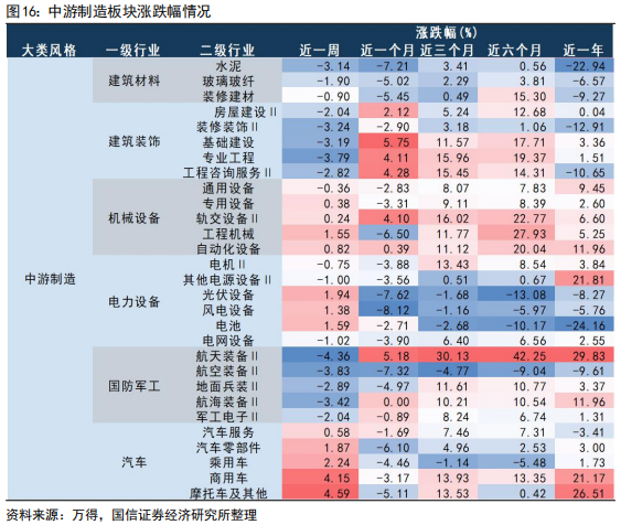 国内行业涨跌幅情况