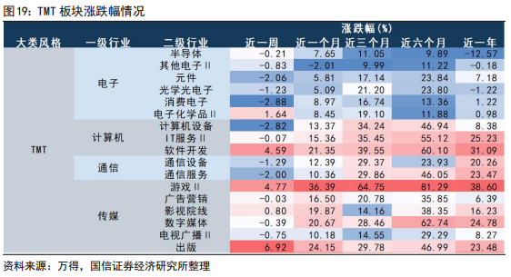 美联储降息从以下两条路径影响A股市场:总量视角改善全球流动性,A股流动性有望进一步好转;二是对A股中科技成长股板块存在结构利好。在此定位下,我们持续看好受益于联储降息预期的成长板块。中长期来看,TMT预计成为全年涨幅居前的板块;短期来看,一季报发布期叠加TMT细分领域交易情绪火热,后续需跟踪是否有增量资金及其配置行为,短期关注家电、氢能和出行链的机会。
