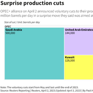 上周日,石油输出国组织OPEC+及其包括俄罗斯在内的成员国同意将原油减产幅度扩大至366万桶/日,占全球需求的3.7%。这一消息的公布将油价每桶推高了 5 美元,现每桶超85美元。以下是 OPEC+ 减产的主要原因:
