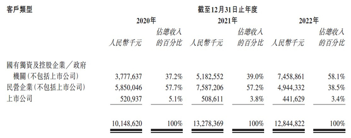 而若按客户类型来划分收入,报告期内山西安装来源于国资背景的客户的收入占比持续上升。数据显示,2020-2022年,山西安装从国有独资及控股企业、政府机构(不包括上市公司)这一类型的客户处获得收入为37.78亿元、51.83亿元、74.59亿元,收入占比分别为37.2%、39%、58.1%。