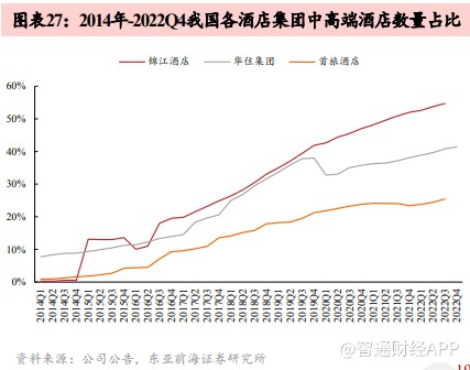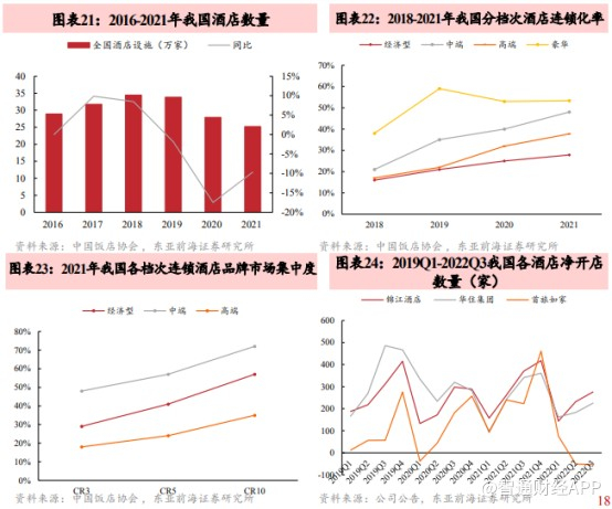 以锦江酒店(600754.SH)、首旅酒店(600258.SH)等三大酒店集团为例,近年来各家中高端酒店门店数量占比、品牌数量占比均持续上升,如锦江酒店近两年新开门店中90%以上为中高端品牌,君亭酒店(301073.SZ)则在收购君澜集团后由过去以直营为主转向加盟模式。