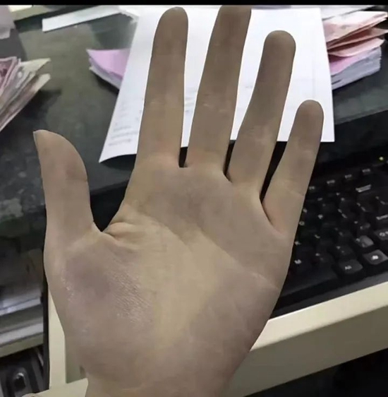 网点排队的人多,杨蕾怕大家等太久,总会加速办理业务。一天下来,她手因为处理过多的文印都变黑了,“跟中毒了似的”。