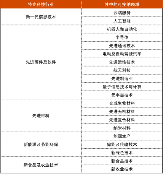 根据港交所新增的第18C章,“特专科技公司”被定义为主要从事(不论直接或透过其附属公司)特专科技行业可接纳领域内的一个或以上的特专科技产品的研发,以及其商业化或销售的公司。特专科技共包括五大领域,分别是新一代信息技术、先进硬件及软件、先进材料、新能源和节能环保以及新食品和农业技术。