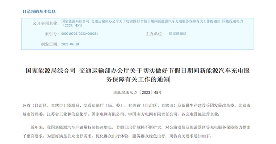 即将到来的五一假期,新能源汽车的长途出行补能已经成为各方关注点。为了更好满足公众出行需求,优化群众出行体验,服务群众绿色出行,国家能源局综合司、交通运输部办公厅日前发布《关于切实做好节假日期间新能源汽车充电服务保障有关工作的通知》。