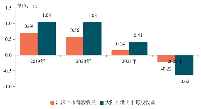 2019-2022年沪深及大陆在港上市房地产公司每股收益均值