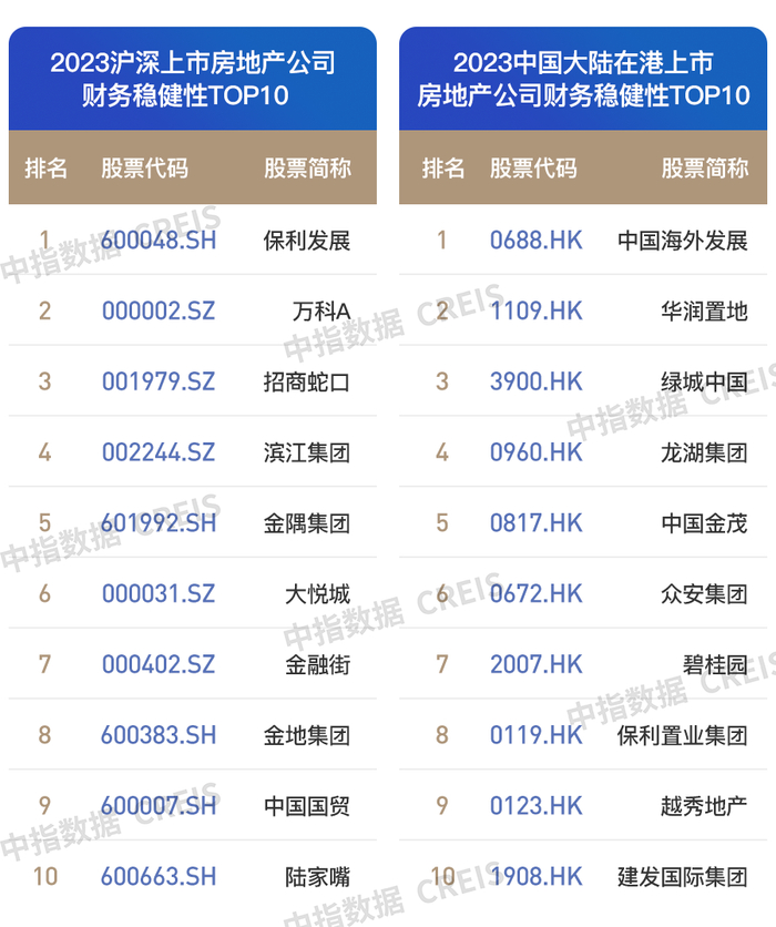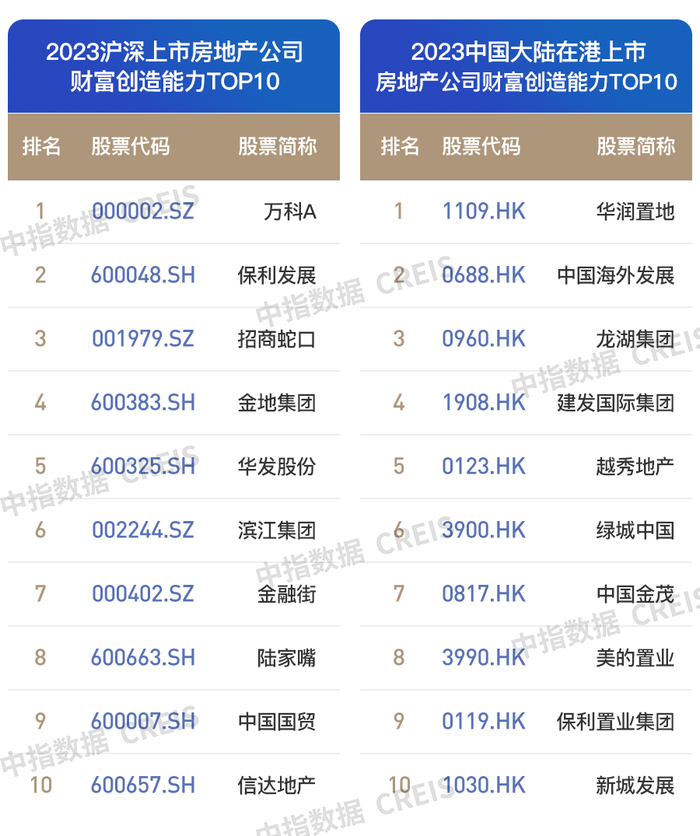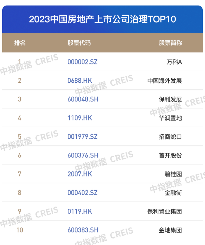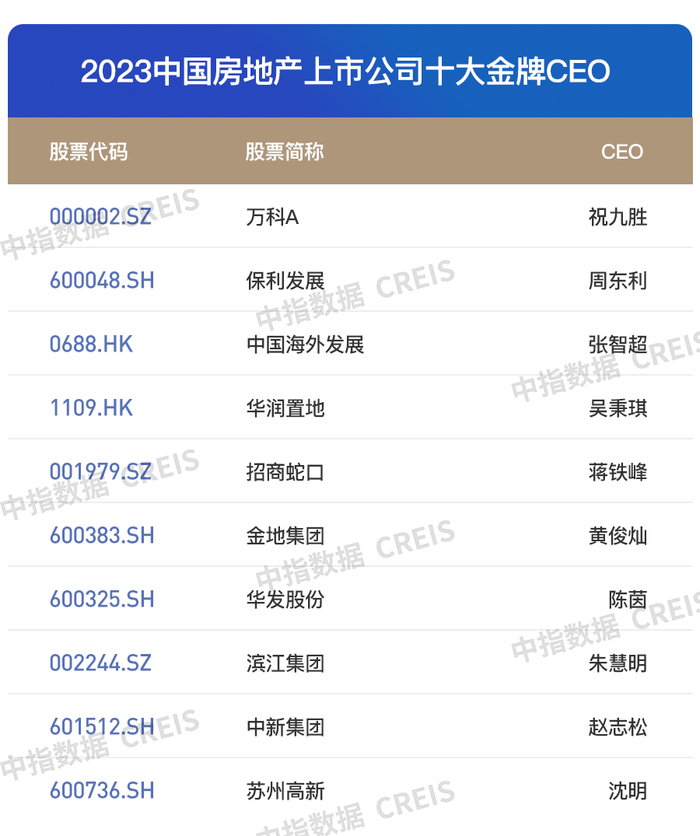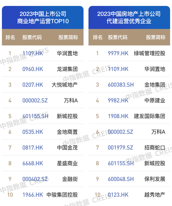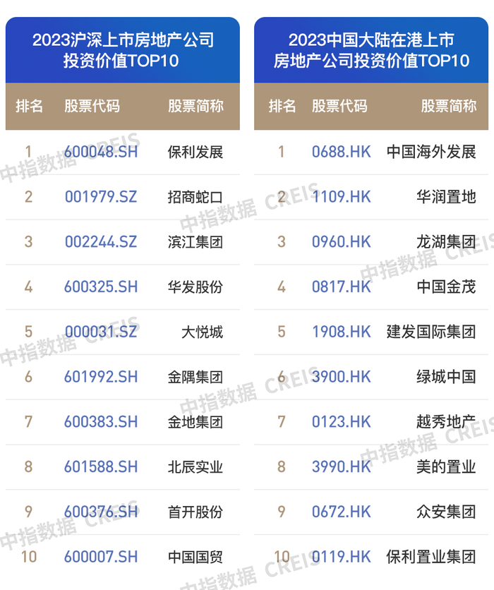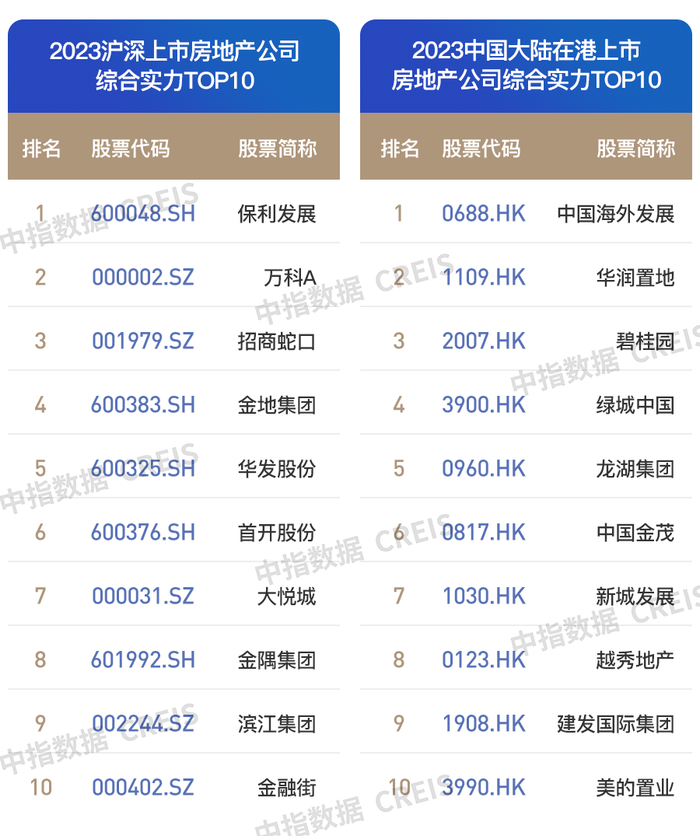 中指研究院发布2023中国房地产上市公司TOP10研究报告