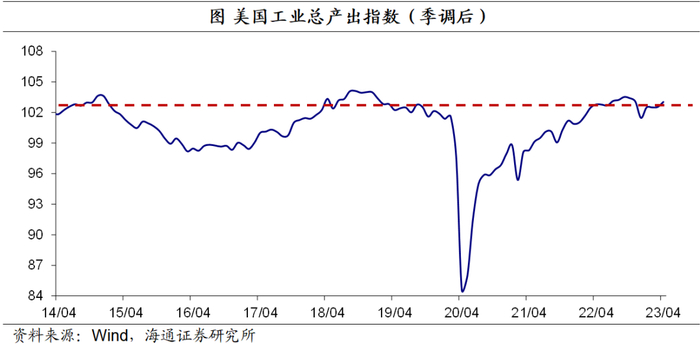 从生产来看,美国工业生产自2020年4月触底后持续回升,在2022年3月便修复至疫情之前水平(2020年3月)。尽管在去年年底小幅放缓,但今年以来,随着全球供应链的持续修复,工业生产也持续回暖,整体仍保持在较高水平。总的来说,美国工业生产持续保持强劲。
