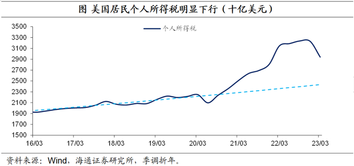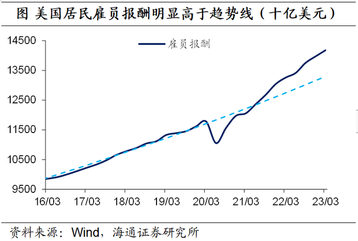 美国今年实行了更高的联邦所得税等级和标准扣除额,从而降低了纳税人的税收负担。加之,雇员报酬也一直保持强劲,这促使美国居民超额储蓄的消耗好于市场预期。