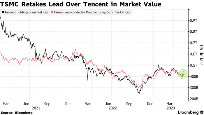 今年5月以来,台积电股价上涨了约6%,市值达到近4500亿美元,这得益于全球对人工智能的持续热情,以及日本等国对本土制造业的大力鼓励。腾讯股价本月在香港股市盘整,部分原因是尽管市场预期中国的重新开放有望带来提振,但该公司的广告销售令人失望。