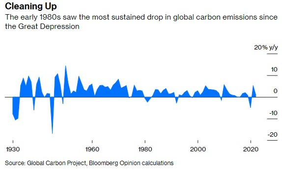 在所有的混乱中,唯一的亮点是对气候的影响。在20世纪80年代初,很少有人关注二氧化碳排放,但这种主要化石燃料的所有动荡都产生了明显的积极影响。1979年至1982年期间,排放量下降了约3.7%,降幅几乎与2020年大流行年4.9%的降幅一样大。如果自1982年以来的40年里保持这种势头,全球目前的碳足迹将是此前的四分之一左右。
