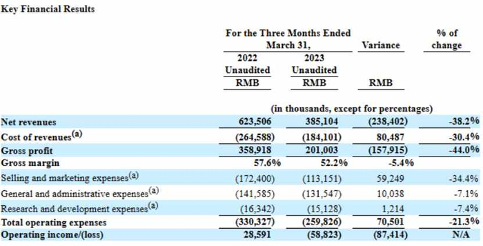 智通财经观察到,近日,达内科技(TEDU.US)公布了其2023年第一季度业绩。数据显示,公司Q1净营收3.85亿元(人民币,下同),同比下降38.2%;当期净亏损4990万元,与上年同期净利润2710万元相比由盈转亏。