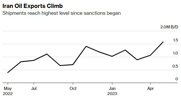 据Kpler称,自去年秋天以来,伊朗原油运输量翻了一番,5月份达到了160万桶/天,尽管美国的制裁仍然存在。而国际能源署估计,伊朗石油产量已达到290万桶/天,为2018年底以来的最高水平。咨询公司SVB Energy、Petrologistics SA和FGE则认为,伊朗石油产量甚至更高,可能超过300万桶/天。