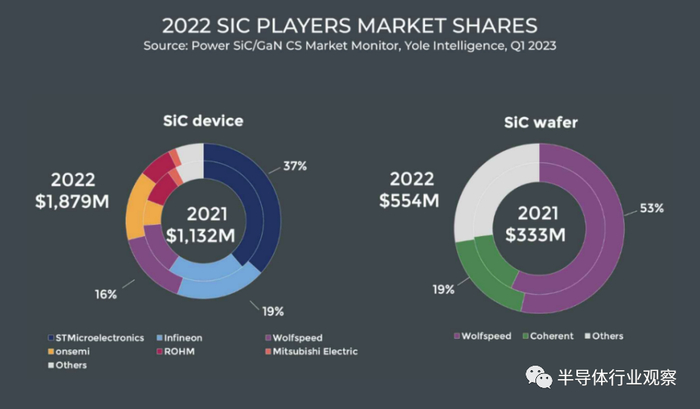 如今,无论是上游材料、晶圆代工厂、器件、封装,国内在SiC的各个细分供应链环节都已有玩家在积极参与。但目前海外厂商在碳化硅领域仍占据先发优势,国内企业仍在起步阶段,技术不断追赶同时产能尚在爬坡。