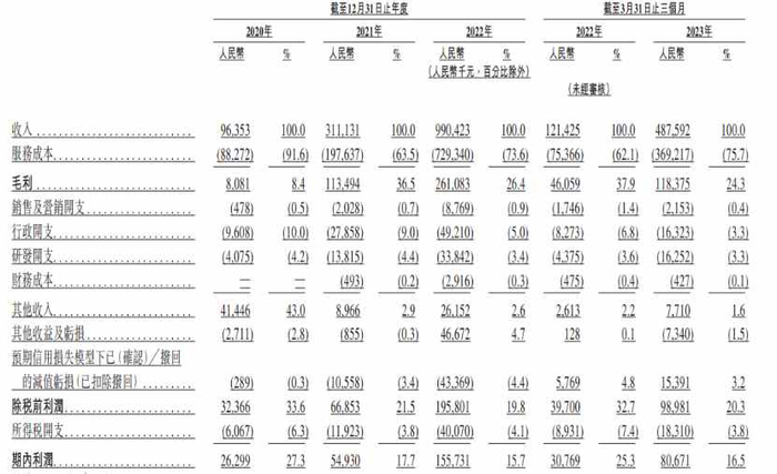 以上映射在公司公司财报上体现的是强劲的收益增长。2020年、2021年、2022年以及截至今年3月31日止三个月,药明合联的收益分别为人民币9635.3万元、3.11亿元、9.90亿元及人民币4.88亿元;同期分别录得经调整净利润(非国际财务报告准则计量)约为3280万元、人民币7710万元、1.94亿元及1.00亿元。