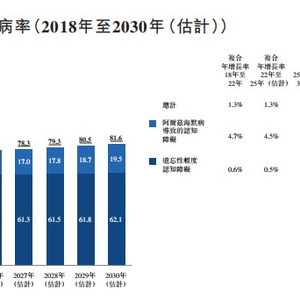 这其中,国内认知障碍患者占据了不小的比例。根据披露,我国这四种主要类型认知障碍的患病人数已经从2018年的3.141亿增加至2022年的3.396亿;预计2025年将达到3.583亿,2030年进一步达到3.901亿,复合年增长率为1.7%。