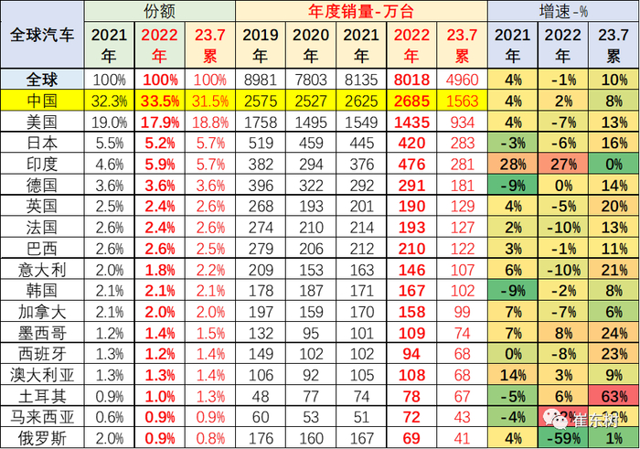 崔东树:1-7月中国占世界汽车份额32%