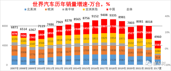 由于欧美等车市都面临衰退加重,车市出现相对低迷,2023年世界其它车市受到美联储加息影响而低迷,中国车市仍较好。