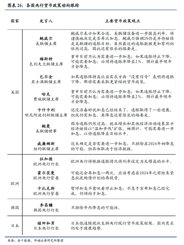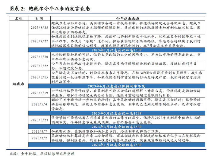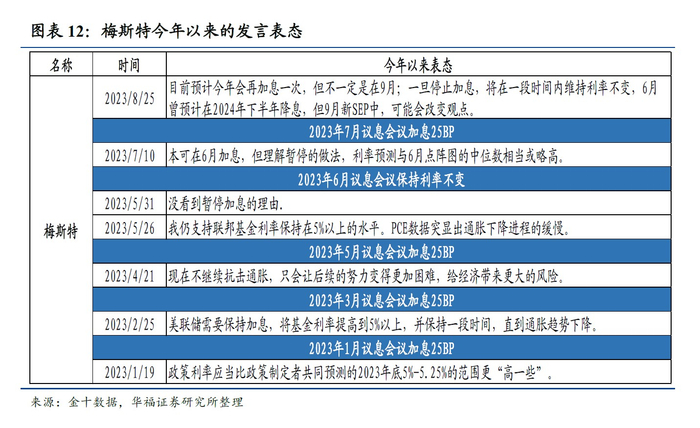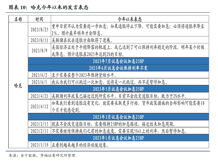 值得注意的是,鹰、鸽属性并不是固定不变的,美联储官员在货币政策决策中会根据实际情况和数据来做出决策,例如沃勒在2019年的加息中表现为鸽派,沃勒认为美联储不应该在当时(2019年)加息,而在2022年的本轮加息周期中,沃勒表现的态度是鹰派,因此表中的鹰、鸽派系分类是针对本轮加息周期。