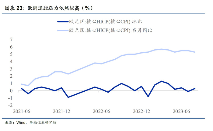 欧洲通胀压力依然较高,能说明通胀未来走势的核心CPI仍处于高位。8月欧元区核心CPI同比上升5.3%,略低于前值5.5%,环比上升0.3%。欧央行行长拉加德表示,欧洲央行将根据通胀情况将利率设定为足够高的水平。