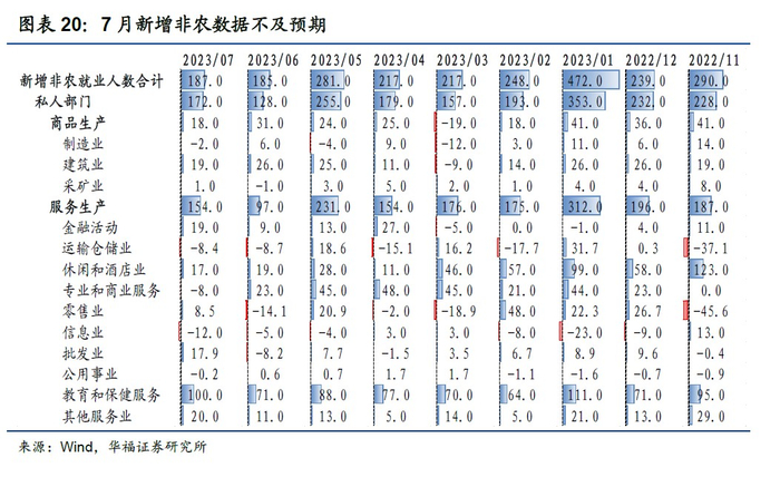 美国平均薪资增速保持韧性,可能带来“薪资-通胀”的螺旋上升,提高了加息终点进一步抬升的可能性。美国劳工统计局(BLS)公布的7月新增非农就业人数为18.7万人,不及市场预期的20万人,前值由新增20.9万人下修至18.5万人。但同时,美国7月失业率为3.5%,低于前值3.6%,仍处于较低位置。具体详见《就业市场略降温,但韧性犹在——美联储7月非农就业数据点评》。