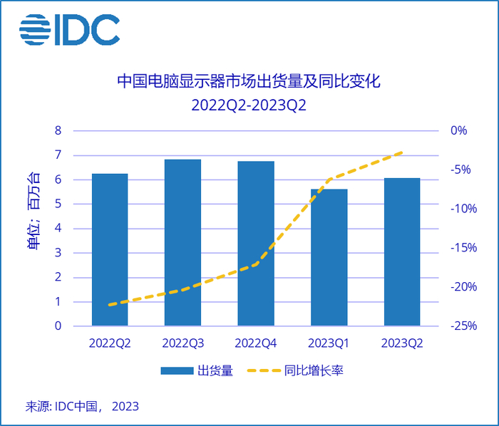 IDC:二季度中国电脑显示器市场出货约607万台 同比下滑2.7%