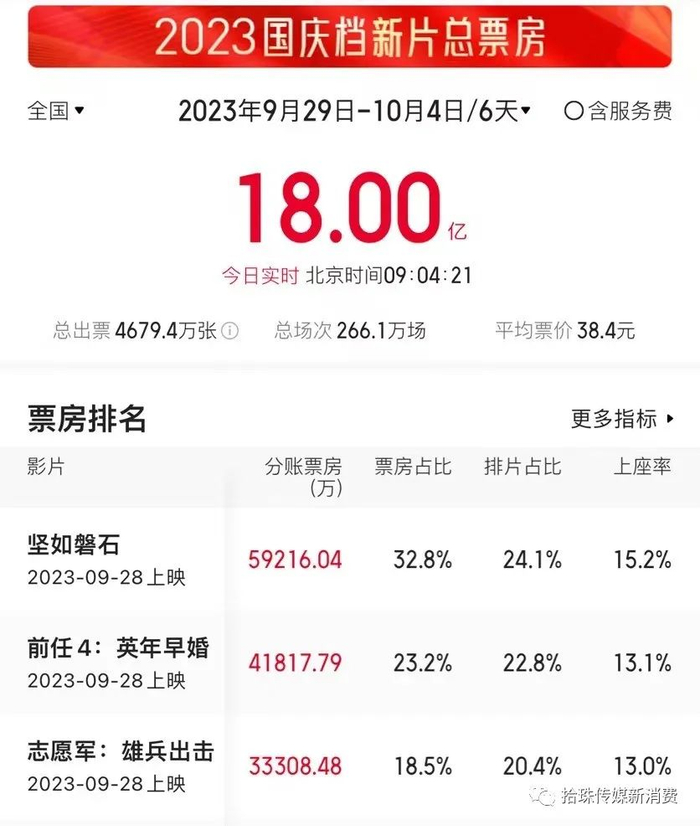 华鑫证券:截止10月4日9时国庆档累积分账票房约18亿元