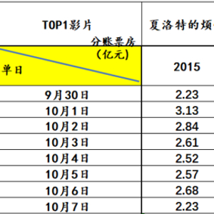 2023年9月29日至10月1日,单日票房3.35、3.81、3.93亿元,环比增长;10月2日至10月3日,单日票房3.41、3.10亿元,环比下降。