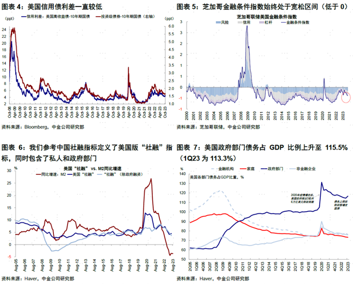 如上文分析,二季度政府部门的信用扩张抵消了私人部门的信贷收缩,减缓了货币紧缩对信贷的传导作用,也是推动美国从年初“软着陆”到三季度“再加速”的主要原因之一。