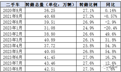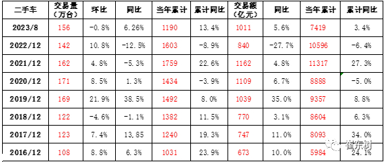 2023年一至三季度,各地公安交管部门共办理机动车转让登记业务2505万笔,其中汽车转让登记业务2331万笔,占93.1%。2023年1-8月中国二手车交易量达到1190万台。交易额达到了7420亿元,中国二手车市场成为名副其实的万亿级的市场。