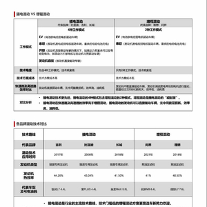插电混动方案的技术门槛高、成本高,但其油耗低、能效高的优点使其成为行业主流混动方案。相比之下,增程式混动技术的技术门槛和成本较低,更受造车新势力的欢迎。这种技术主要是通过增加一个发电机来扩大电池容量,从而提高电动汽车的续航里程。由于其结构相对简单,成本较低,因此更适合新进入该行业的小型制造商或初创企业。