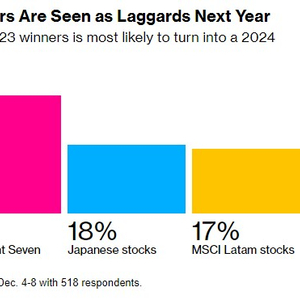在这项针对518名受访者的调查中,约34%的受访者认为减肥药制造商作为今年股市上的赢家,在明年很可能会变成输家。相比之下,31%的人认为所谓的“七巨头”(苹果(AAPL.US)、微软(MSFT.US)、Alphabet(GOOGL.US)、亚马逊(AMZN.US)、英伟达(NVDA.US)、特斯拉(TSLA.US)和Meta(META.US))将在明年跑输大盘。其余的受访者则选择了日本和MSCI拉丁美洲股票。