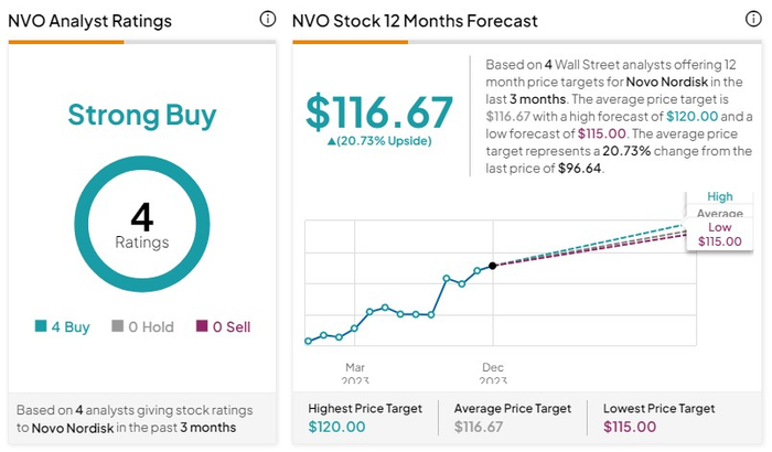根据机构统计,目前华尔街对诺和诺德的平均目标价为116.67美元,这意味这该股未来一年还有20.73%的上行空间;华尔街对礼来的平均目标价为650.17美元,这意味该股还有8.71%的上行空间。