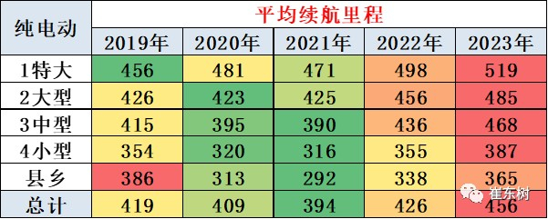 目前纯电动乘用车的续航里程总体在向长续航逐步提升,2023年达到456公里,其中大城市需求车型续航较长,县乡续航较短。