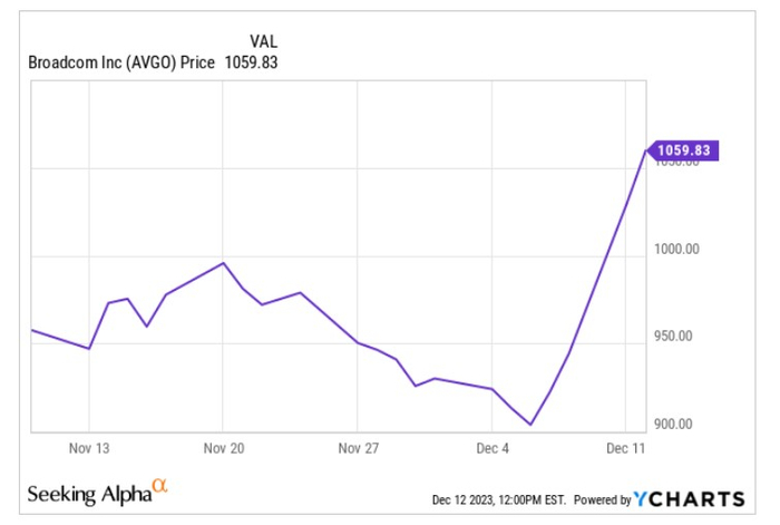 在一众利好因素推动下,该股的交易价格目前已经达到了每股1089.69美元,这虽然说明投资者非常看好该股的前景,但与此同时,许多小型普通投资者也越来越难以增持该股头寸。在近些年来许多科技巨头拆分股票的背景下,这令市场开始猜测,博通很有可能是下一个,并可能因此而获得提振。