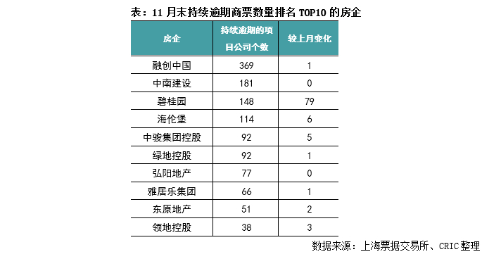 商票逾期情况稳定,仅TOP10逾期项目公司数量环比增长