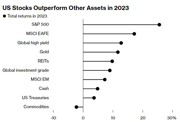 出人意料的强劲美国经济为今年的股市上涨提供了一个平台,随着市场对央行宽松政策的乐观情绪站稳脚跟,股市在第四季度获得了额外的动力。