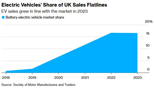 电动车在英国的市场份额增长停滞不前,政策约束下的汽车制造商们不得不寻求减税。