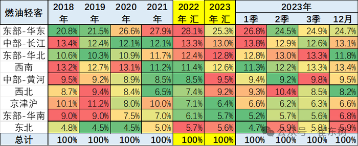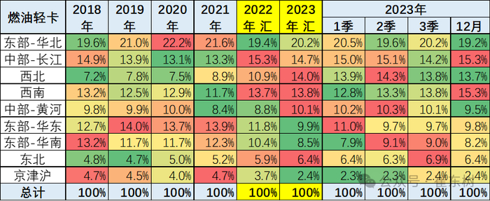 燃油轻卡市场主要是在华北市场和长江市场,表现相对规模较大。